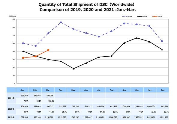 The Camera & Imaging Products Association (CIPA) has released its latest data, detailing the volume and value of digital camera units produced and shipped around the world through March 2021.